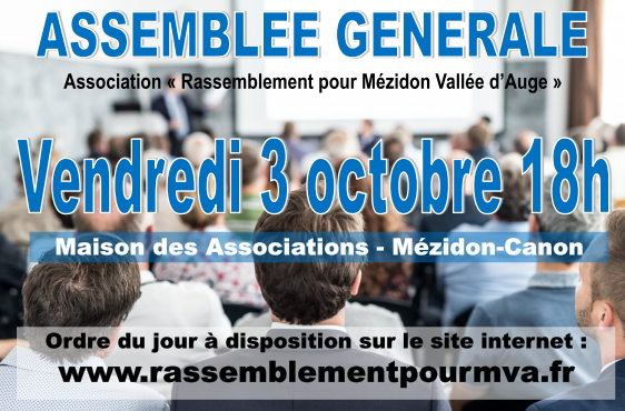 L'Assemblée Générale constitutive de la nouvelle Association à MVA aura lieu le vendredi 03 octobre 2025 à 18h, à la salle Georges Laisné au complexe sportif Jean Ladoumègue (214 avenue Jean Jaurès) à Mézidon-Canon.