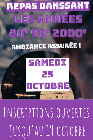 🎉 Annonce Spéciale : Repas Dansant Années 80’ 90’ 2000’ Disco ! 🎉